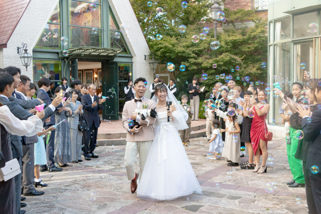 結婚式は完全貸切制のため、ペットもゲストもリラックスして過ごせます。チャペルやガーデンはもちろん、ロビーや屋外スペースでも一緒に過ごすことができ、ゲストもペットもストレスなく楽しめる結婚式が実現します。